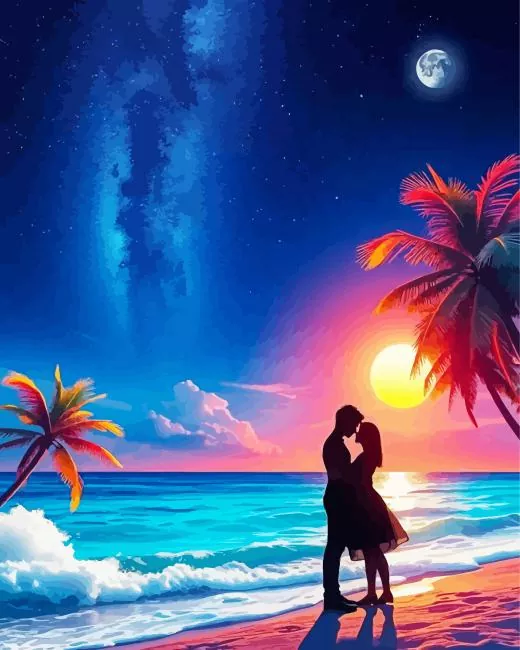 Boy And Girl Silhouette In The Beach Diamond Painting