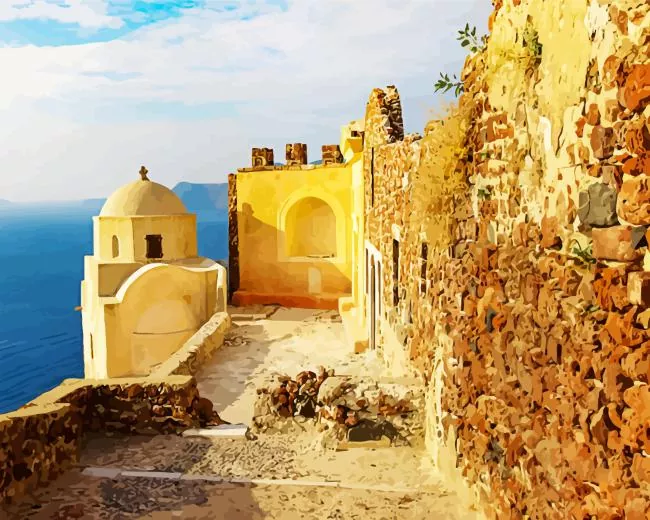Discover the Brilliance: Exploring What Awaits You in Your Byzantine Castle Ruins Santorini Diamond Painting Kit