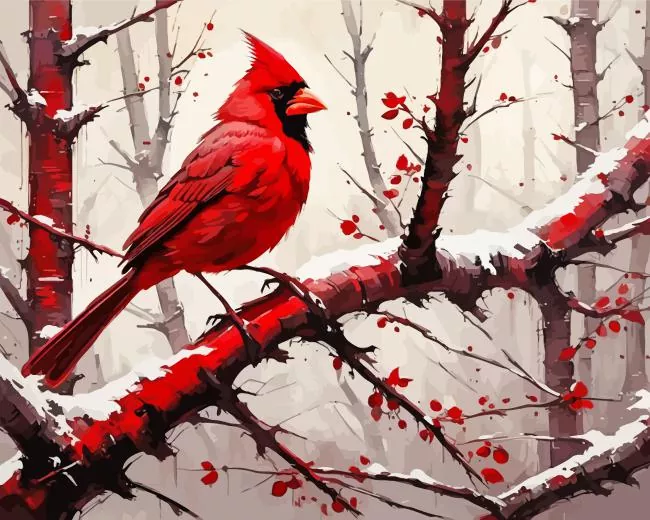 Cardinal On Branch Art Diamond Painting