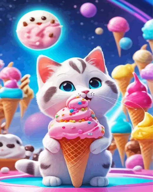 Cartoon Cat Eating Ice Cream Diamond Painting