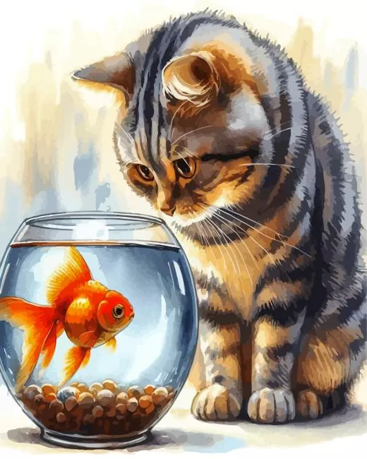 Cat And Fish Bowl Diamond Painting