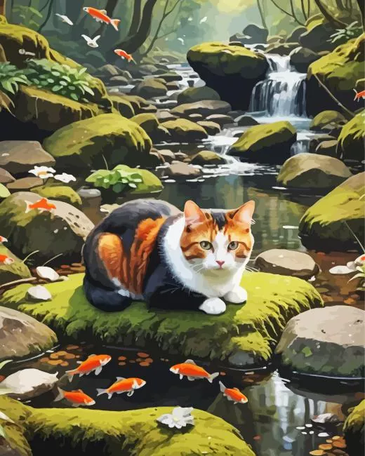 Cat And Koi Fish Diamond Painting