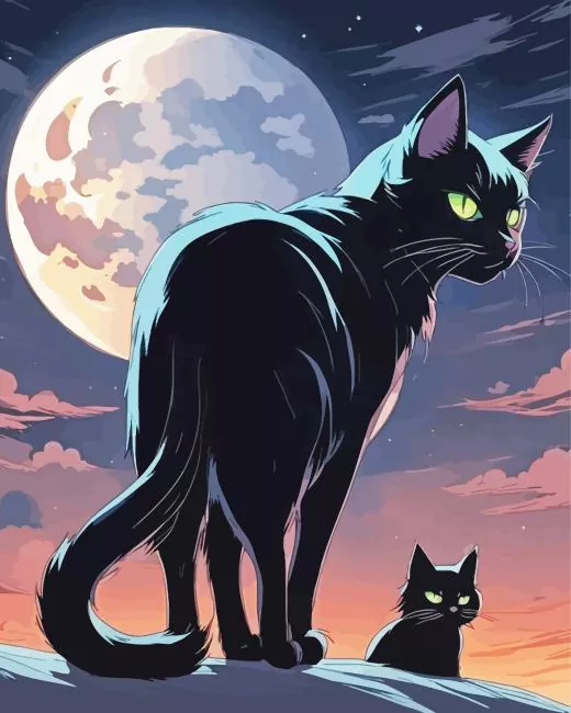 Cats And Moon Diamond Painting
