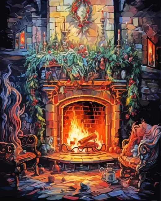 Chair By Fireplace Diamond Painting