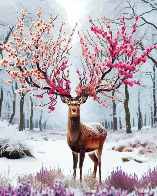 Cherry Blossoms Buck Antlers Diamond Painting