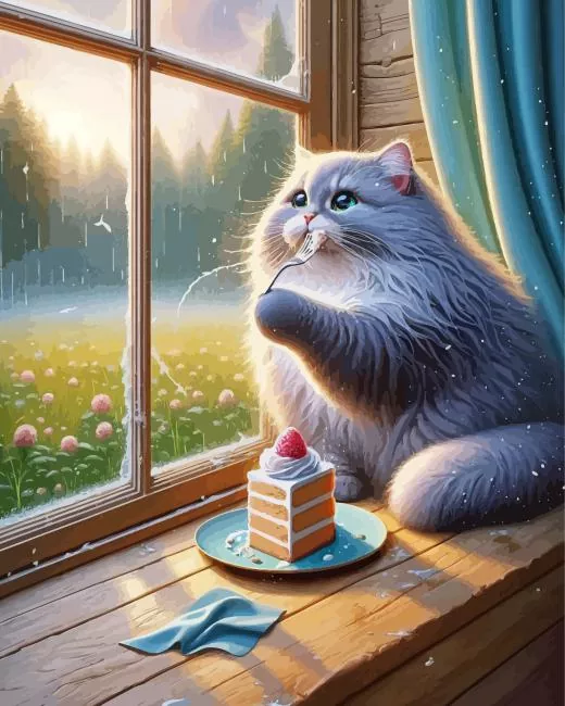 Fat Cat Eating Cake Diamond Painting