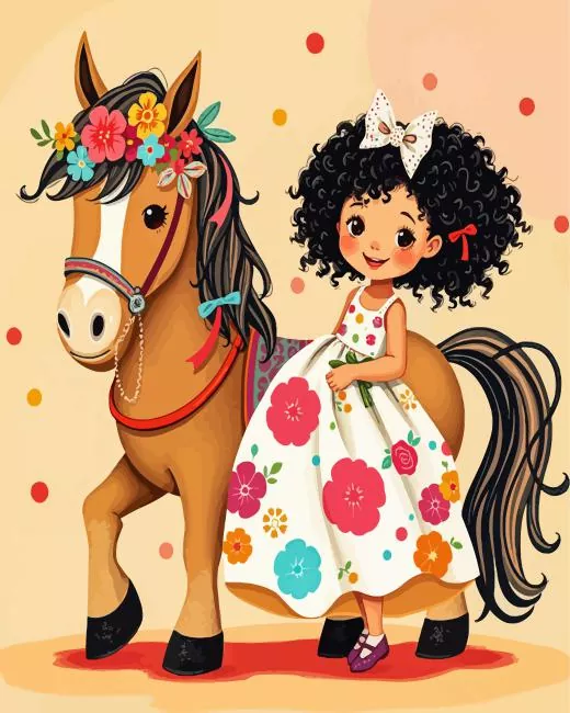 Floral Horse And Girl Diamond Painting