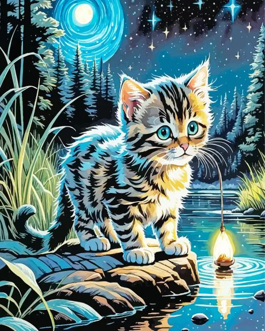Discover the Brilliance: Exploring What Awaits You in Your Fluffy Tabby Kitten At Night Diamond Painting Kit