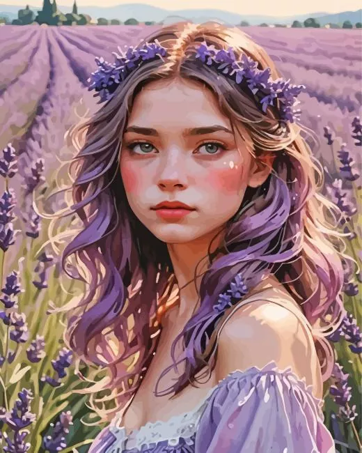 Girl In Lavender Field Diamond Painting