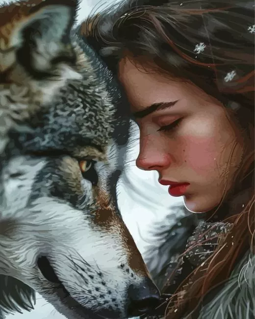 Girl With A Wolf Diamond Painting