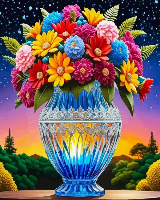 Glass Colorful Flowers Vase Art Diamond Painting