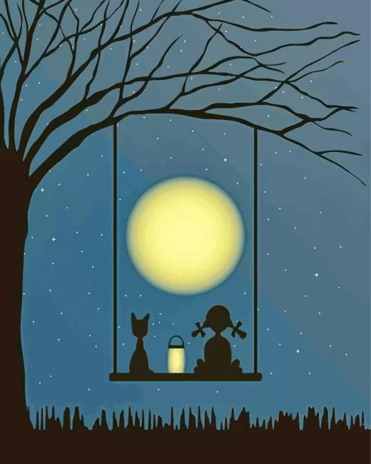 Illustration Cat And Girl Silhouette Diamond Painting
