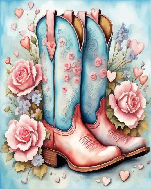 Pink Flowers In A Cowboy Boot Art Diamond Painting