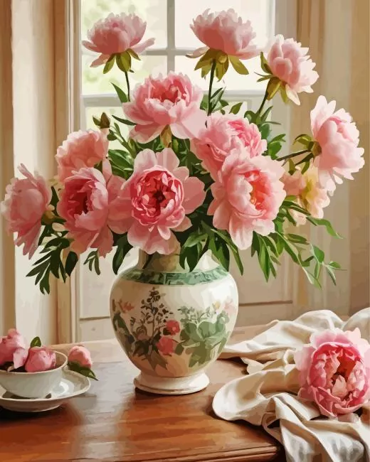 Discover the Brilliance: Exploring What Awaits You in Your Pink Peonies Bouquet In Vintage Vase Diamond Painting Kit