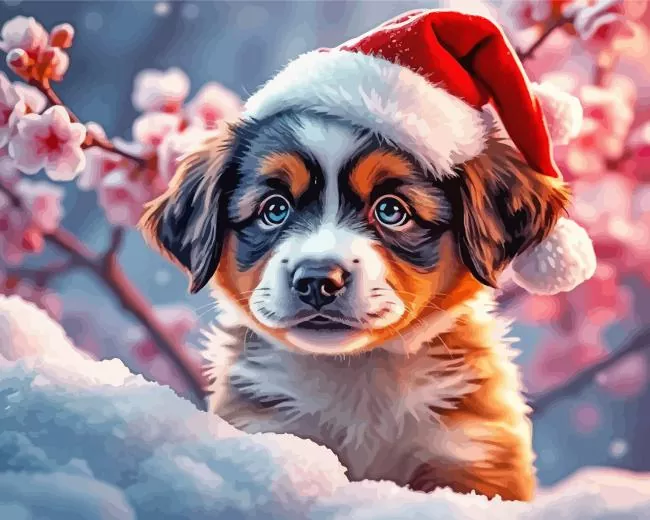 Santa Hat Dog Art Diamond Painting