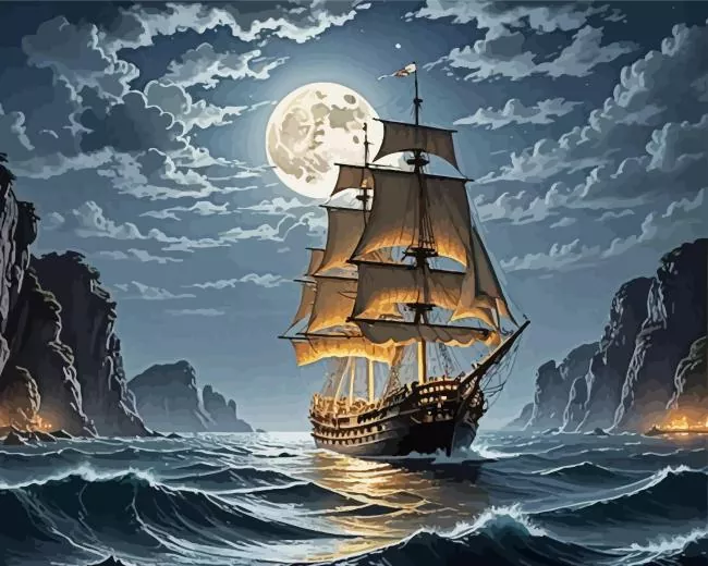 Ship In Moonlight Diamond Painting