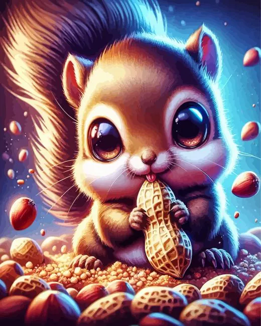 Squirrel With Big Eyes Eating Peanuts Diamond Painting