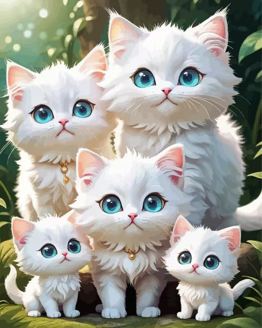 White Cat Family Diamond Painting